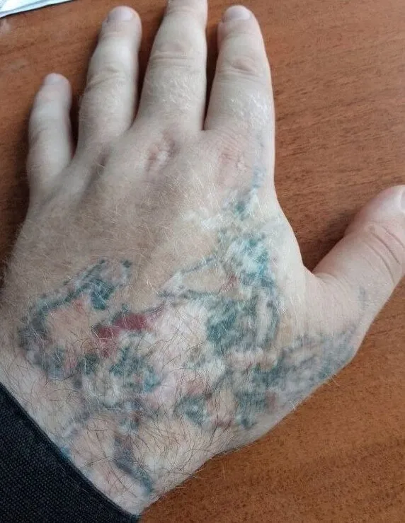Quite simply, potassium permanganate has nothing to do with tattoo removal at all – it merely causes a severe chemical burn to the skin and its destruction. Together with the destroyed skin, part of the tattoo can indeed be removed with dead tissue. However, the risks of this method are simply prohibitive. The least that you can get using such a “home tattoo removal method” is a scar of skin mixed with tattoo residue, and this is only after prolonged inflammation and healing after a severe chemical burn.